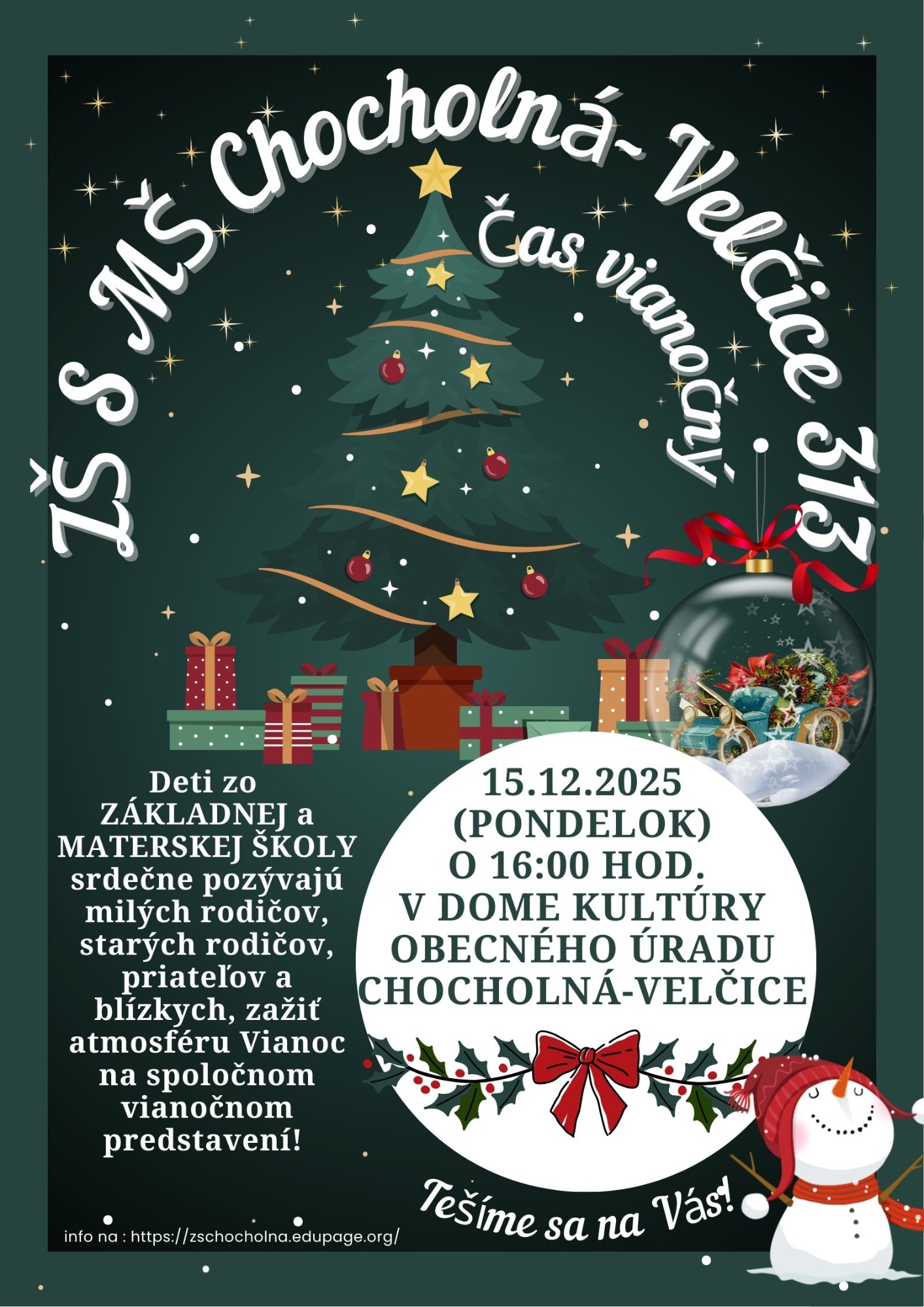 PONDELOK 15.12.2025 o 16:00 hod. v DOME KULÚRY OBECNÉHO ÚRADU CHOCHOLNÁ-VELČICE