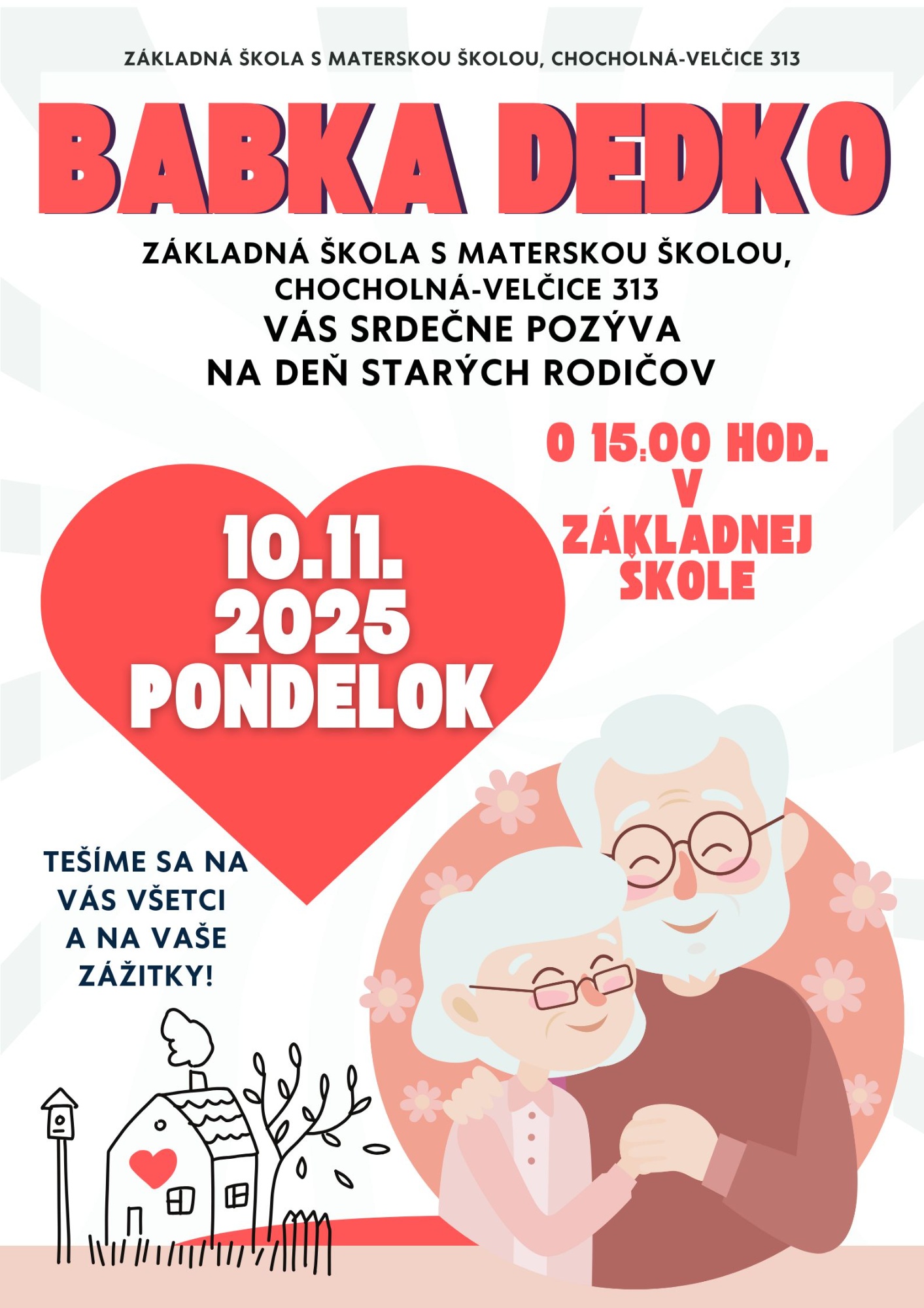 Oznamujeme Vám, že podľa ustanovenia § 150 ods. 5 zákona č. 245/2008 Z.z. o výchove a vzdelávaní (školský zákon) a o zmene a doplnení niektorých zákonov udeľujeme voľno z organizačných dôvodov žiakom 1. – 5. ročníka Základnej školy s materskou školou, Chocholná-Velčice 313, dňa 17.11. 2025 (pondelok).